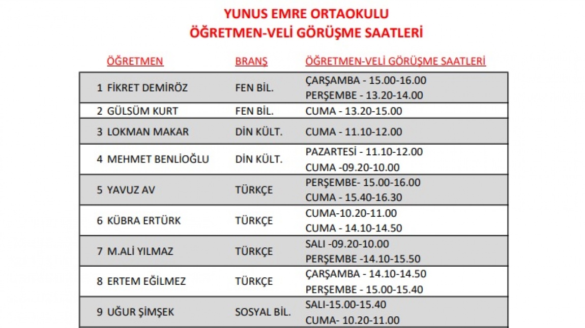 Veli-Öğretmen Görüşme Saatleri Güncellenmiştir.